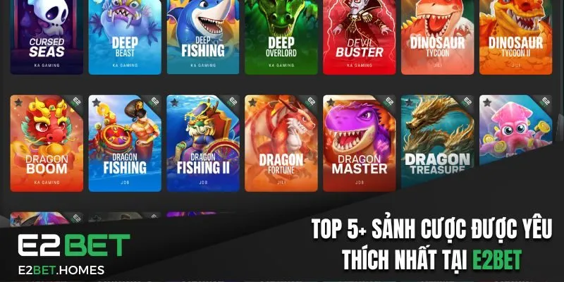 Chúng tôi có thể tự tin khẳng định kho trò chơi của E2bet toàn là siêu phẩm trong ngành. Nếu mới tham gia và chưa biết bắt đầu từ đâu, các bạn có thể tham khảo một số cái tên như dưới đây: